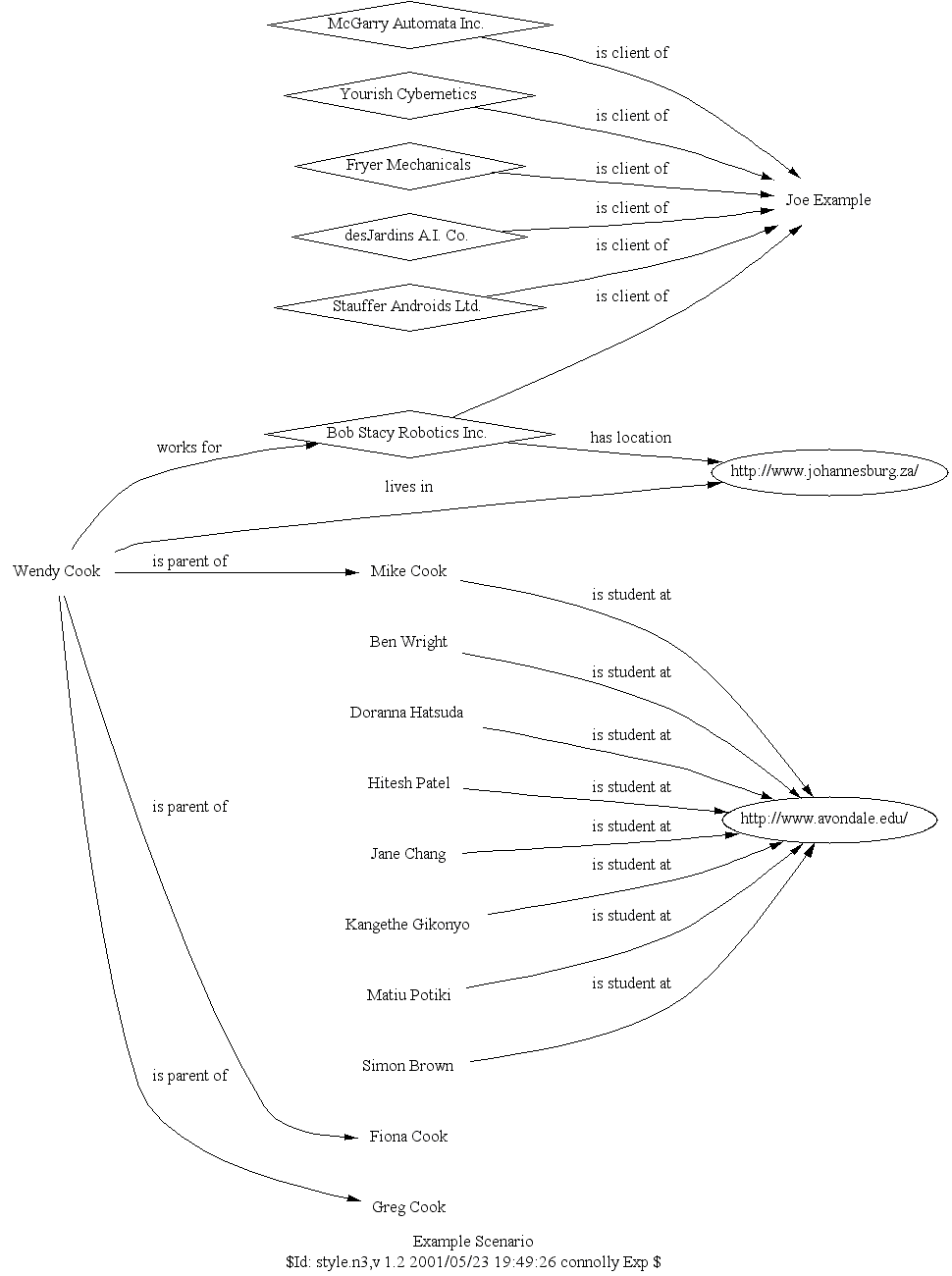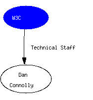 :w :staff :d . :d a :Person; :name "Dan Connolly". :w a :Organization; :tla "W3C".