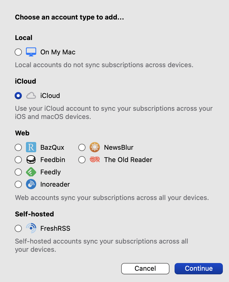 NetNewsWire uses a number of protocols to sync your set of RSS feeds across devices