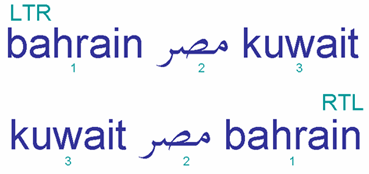 It is particularly important to understand that order in which directional runs are displayed across the page depends on the prevailing base direction.