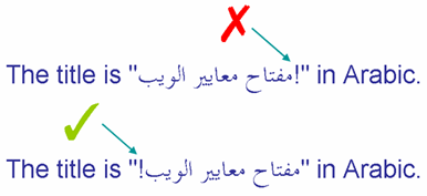 The first line on this picture shows an exclamation mark, that is part of the embedded Arabic text, appearing in the wrong place. The second line shows the desired result.