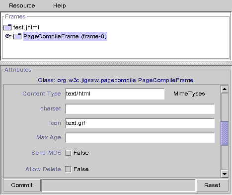 Add a org.w3c.jigsaw.pagecompile.PageCompileFrame to the test.jhtml