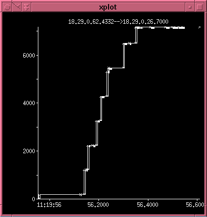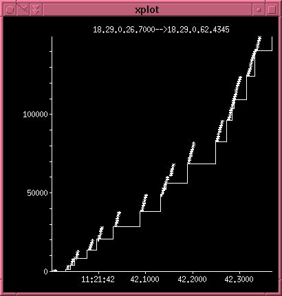 In our test case we observed a gain in time relative to number of TCP packets as follows: