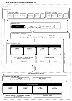 - Agent - the User Payment Agent could be a part of the User Agent of W3C - the web browser, but should also be implementable outside of the browser to allow for multi-browser, setups and 'wallet activities' via interfaces usually not connected to the browser. (Like proprietary NFC protocols or access to secure elements, where credit card applications are run.)