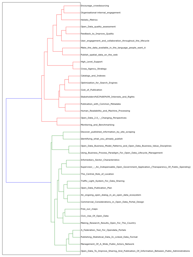Cluster 1 titles: Human_Readability_and_Machine_Processing, Cost_of_Publication, Stakeholders%E2%80%99_Interests_and_Rights, Feedback_to_Improve_Quality, Optimization_for_Search_Engines, Publication_with_Common_Metadata, Catalogs_and_Indexes, Open_Data_quality_assessment,