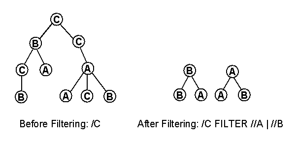 Like OQL, XQuery is a functional language in which a query is represented as an expression. XQuery supports several kinds of expression, and therefore its queries may take several different forms. The various forms of XQuery expressions can be nested with full generality, so the notion of a "subquery" is natural to XQuery. The input and output of a query are instances of a data model called the XML Query Data Model [QueryDataModel]. This data model is a refinement of the data model described in the XPath specification [XPath], in which a document is modeled as a tree of nodes. A fragment of a document, or a collection of documents, may lack a common root and may therefore be modeled as an ordered forest of nodes of various types, including element nodes, attribute nodes, and text nodes, as illustrated in Figure 1.