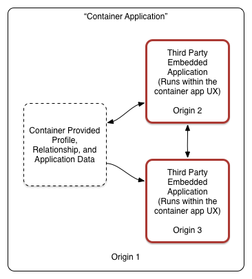 Container embeds multiple third party components that draw data from the container and communicate directly with one another.